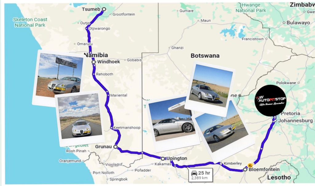 Izak isn’t our first visitor from Namibia either. We hope he won’t be the last. We ship Alfa Romeo parts up there regularly. Every so often, someone decides the best approach is to simply drive the car down themselves.